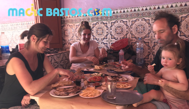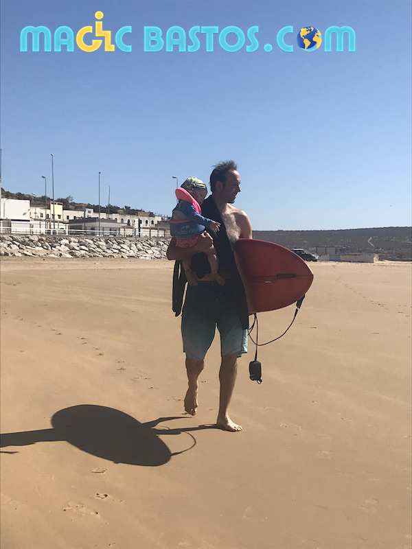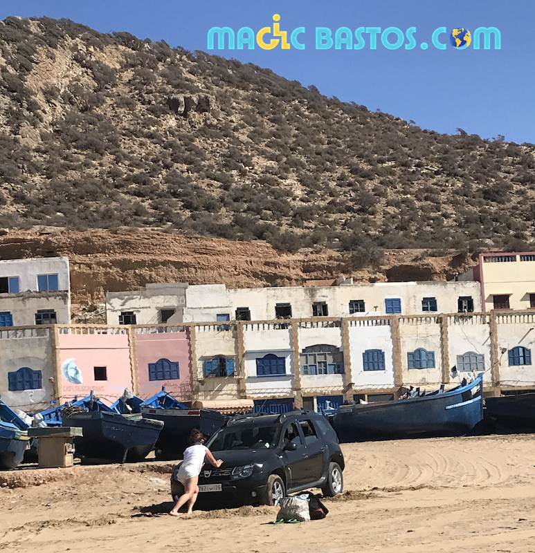 Auré et Charlotte et leur fille Agathe emmènent Bastos et Virginie pour une journée d’excursion à Tafedna, une superbe plage située à 1h15 de route au sud d’Essaouira. Après un petit incident sur la plage où Auré s’embourbe avec la voiture,
