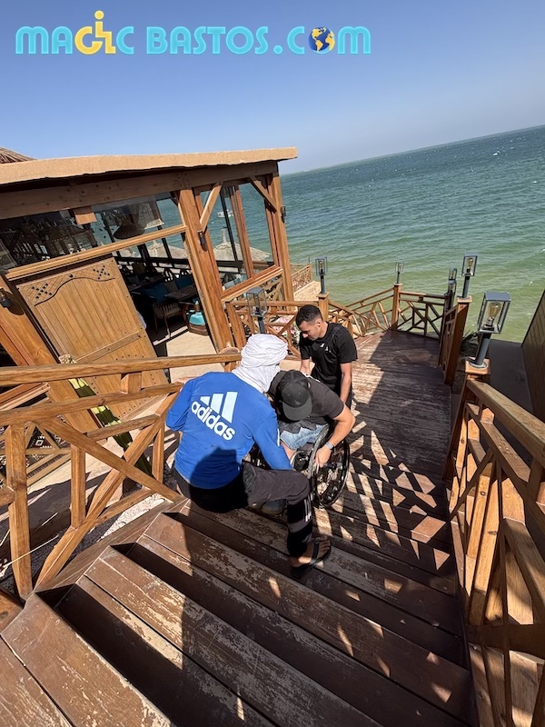 Le passage de Bastos a d’ailleurs sensibilisé Bachir, le responsable de l’hôtel, qui a prévu de faire fabriquer une rampe amovible pour faciliter l’accès des futurs clients en fauteuil.