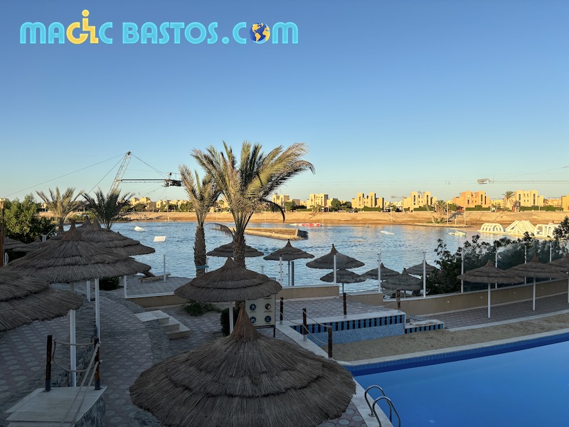 El Gouna est une ville touristique construite dans le désert égyptien au bord de la mer rouge. On y trouve de nombreuses activités dont un téléski nautique.