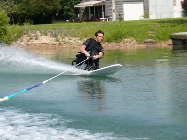 Philippe Turchet (président de la commission handi de la FFSN) organise régulièrement des stages et des compétions de ski nautique ce qui nous permet de progresser et de faire du bateau à des prix très intéressants.