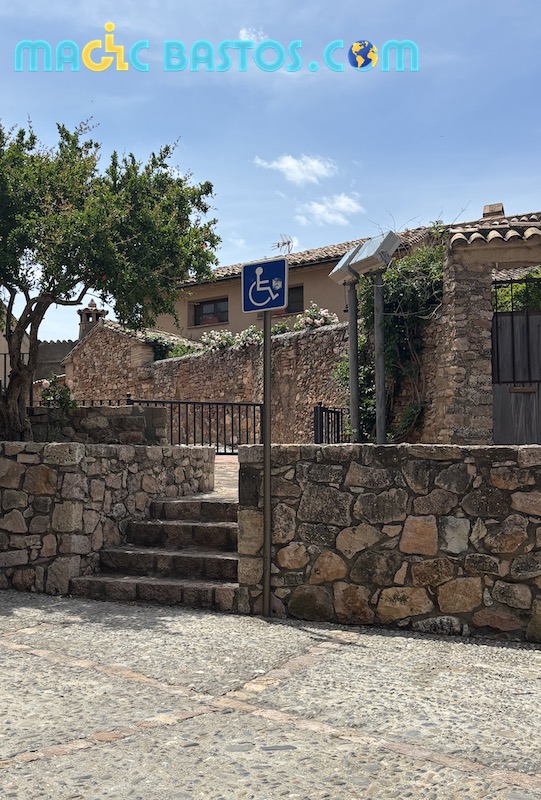 Amélie et Bastos se sont garés sur le grand parking à l’entrée du village mais il a des places handicapés à l’intérieur du village.