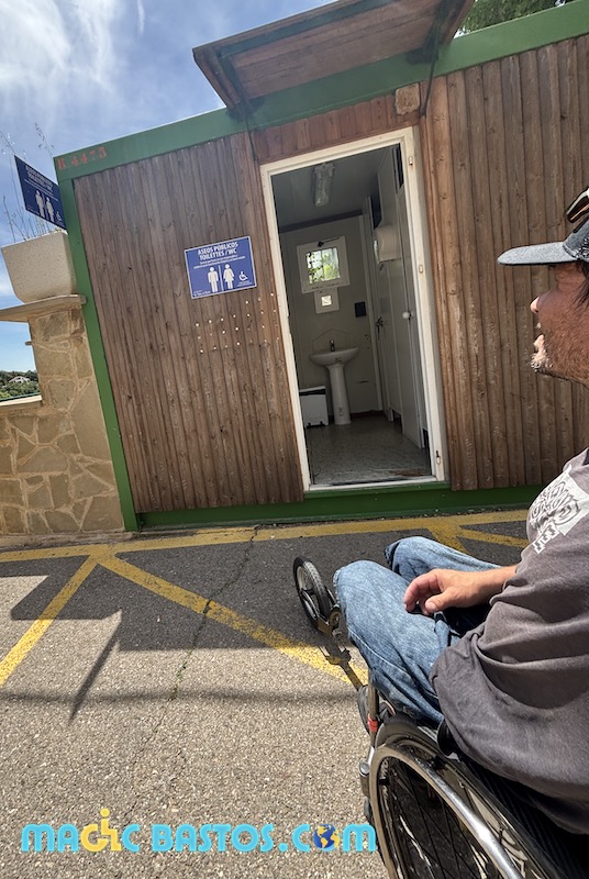 Dans ce village l’office de tourisme a des toilettes parfaitement accessible pour une personne en fauteuil roulant et il est possible de se garer à l’intérieur du village.
