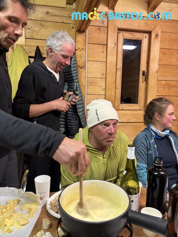 Après 1h30 de montée, toute l’équipe se retrouve au chaud dans la cabane de l’ESF pour partager une fondue