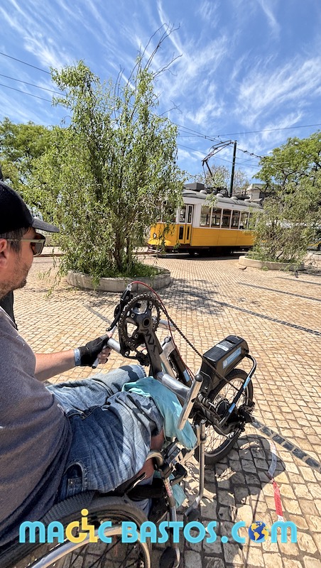 Pour finir leur découverte de la ville, ils tentent de grimper vers le vieux quartier de l’Alfama, mais la pente s’avère trop raide pour le handbike de Bastos.