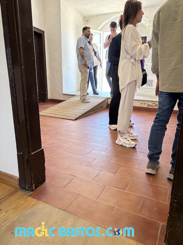 Ce dernier termine donc la visite en fauteuil roulant, soutenu par Amélie, qui l’aide avec patience et bonne humeur à parcourir les ruelles escarpées du quartier historique.