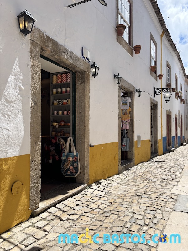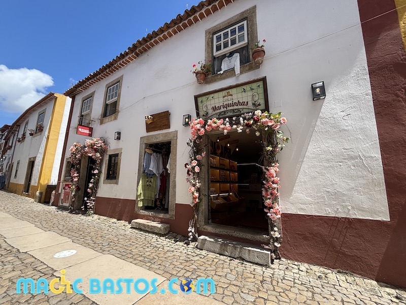 Entre Nazaré et Peniche, Amélie et Bastos s’arrêtent à Óbidos, un joli village fortifié. À l’entrée du village, il y a un grand parking payant ainsi qu’un petit parking derrière l’office du tourisme, avec des places et des toilettes accessibles aux personnes handicapées.