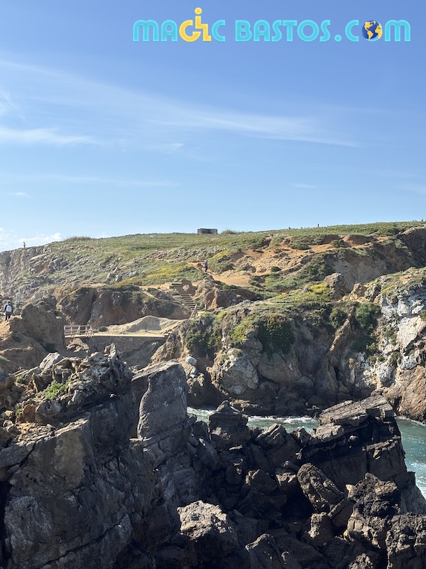 Lorsqu’ils arrivent à Peniche, Amélie et Bastos vont admirer l’océan depuis la plage de Cova da Alfarroba.