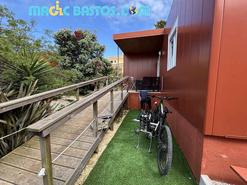 Durant le séjour ils se déplacent uniquement en vélo. Bastos utilise sont handbike à clamper qui se fixe sur sont fauteuil roulant.