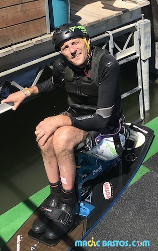 Arnaud C de Frejus participe à son 3ème wakecamp Magic Bastos. Il découvre le cable sitwake sur une journée Vivre+ à EXO 84 en 2019.